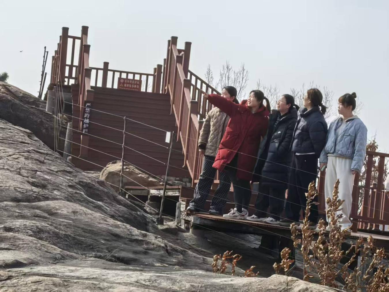在登山途中,大家走近将军崖岩画,近距离感受千年历史文脉的厚重底蕴。作为全国重点文物保护单位,将军崖岩画素有“东方天书”的美誉,岩面上镌刻着远古先民留下的人面、农作物、太阳、星象等图案,线条古朴、意象神秘,记录着早期先民的生产生活场景,承载着苏北地区珍贵的远古文化密码。大家驻足观赏,在历史痕迹中了解家乡文化根脉,感受中华优秀传统文化的独特魅力,进一步增强了文化认同感、自豪感,更树立了“保护文物、人人有责”的坚定理念。