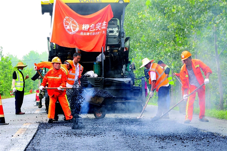 7月27日,连云港市公路养护工人在267省道克服“上...