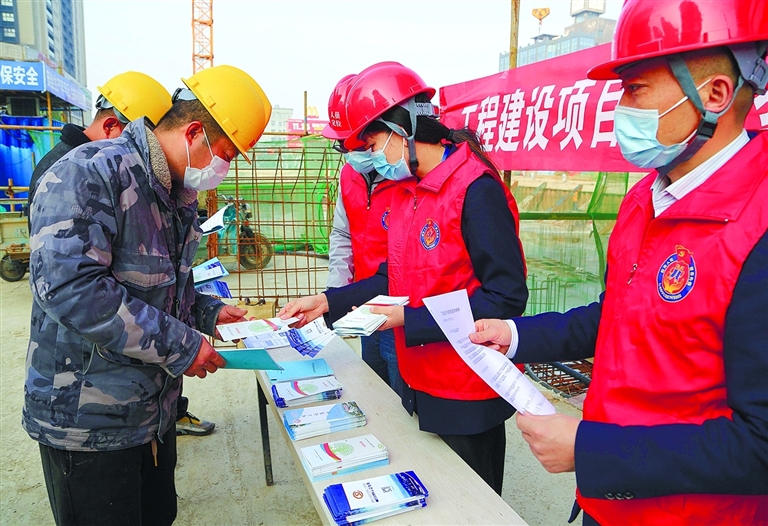 11月16日,赣榆区人社局在一处建设工地开展工伤参保宣传活动,为工人送上工伤参保“大礼包”,现场发放印有工伤参保宣传小册子,并接受工人相关问题咨询,切实保障劳动者的生命安全和身体健康。记者 王健民 通讯员 世新 王海涛 摄影报道