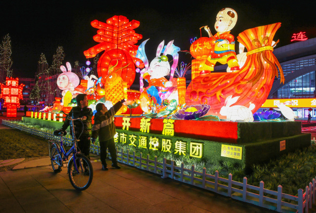 新春佳节将至,港城大街小巷夜晚处处霓虹闪烁,形态各异的花灯流光溢彩,营造了喜庆详和的节日氛围,光影交织中渲染出浓浓的港城年味儿。(记者 王健民 摄)