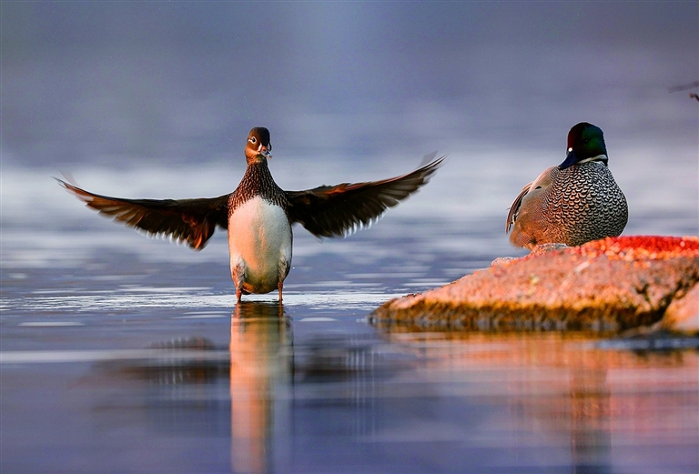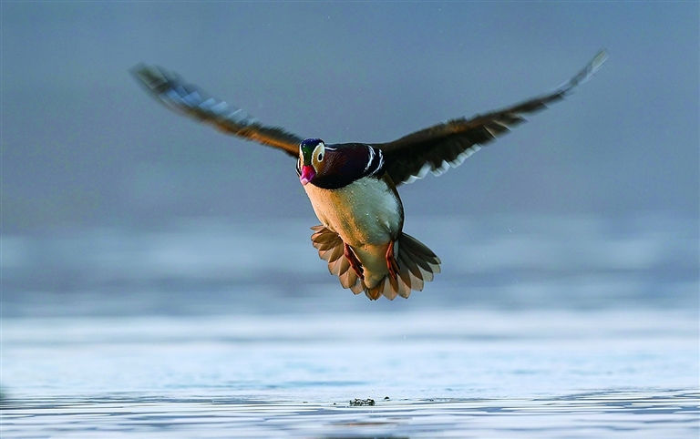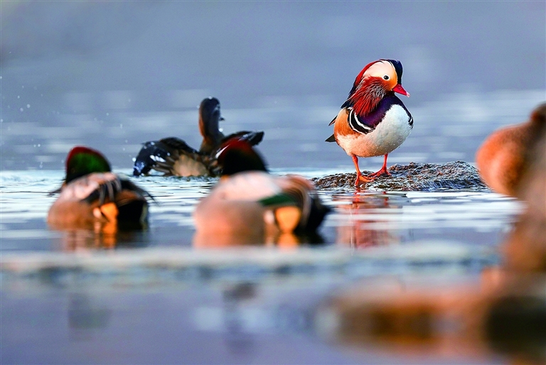 日前,在花果山大圣湖拍摄的候鸟。近期,数千只鸳鸯、野鸭等鸟类飞抵花果山大圣湖越冬,为大圣湖增添了一道生态风景线。近年来,连云港推进生物多样性保护工作,生态环境不断得到改善,为鸟类提供了良好的繁衍空间,吸引了越来越多的鸟类到港城栖居越冬。