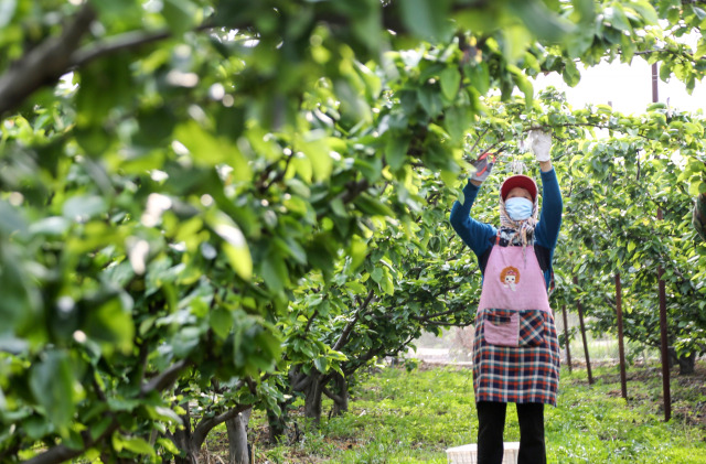 4月19日,在连云港市朝阳街道韩李村,农民在田园中...