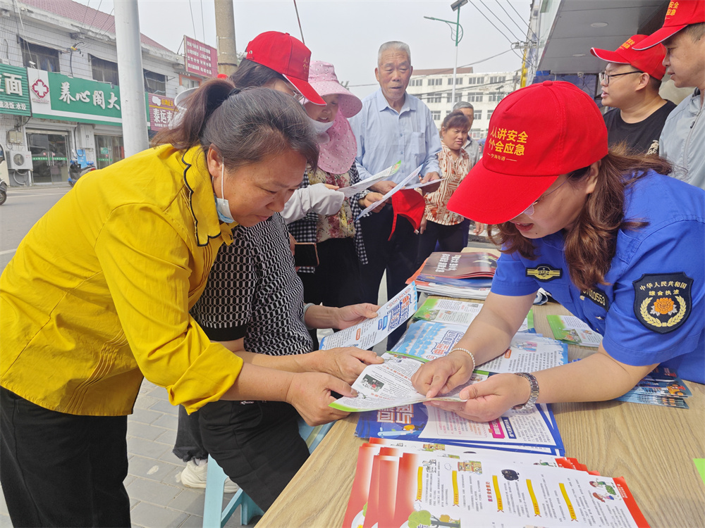 在活动现场,宁海街道办事处主任伏莹莹带领综合执法局工作人员紧紧围绕“人人讲安全、个个会应急”主题,通过向辖区群众发放安全生产宣传页,在公交站台、小区门口张贴消防安全海报,电子屏滚动播放安全生产标语等方式,向群众集中宣传燃气安全、用电安全、消防安全、交通安全、防溺水等应急知识。过往群众纷纷驻足,认真观看宣传彩页学习安全知识,主动咨询相关安全问题。