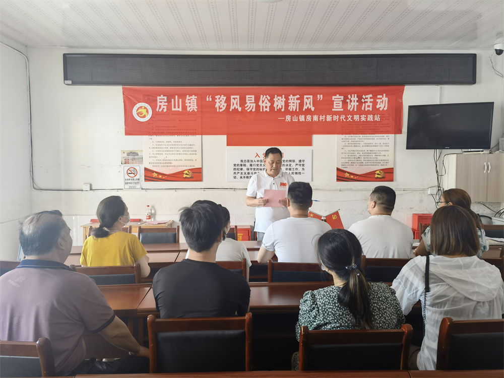建章立制明责任,打造治理“生力军”。房山镇不断强化组织领导,完善制度建设,全力打造一支懂治理、能治理、善治理的社会治理“生力军”。成立了由房山镇党委书记任组长,班子领导为成员的移风易俗工作领导小组,细化分工,形成工作合力,扎实推动移风易俗工作扎实有序开展。充分发挥“红白理事会”在移风易俗工作中的助推器作用,严格规范村镇红白事的办理流程、规格、标准等内容。听取村民对修改完善《村规民约》的意见,充分听取村民心声,顺应新时代新农村发展振兴的要求,“刷新”村规民约。经过多次修改整理,形成现在涵盖了婚丧嫁娶、乡村振兴、环境治理、乡风文明、移风易俗等方面的村规民约。耳濡目染,确保让规矩立起来、让新风树起来、让村民做起来。制定《红白理事会章程》《十提倡、十禁止》,实行红白事季度报送制度,引导群众破除旧习,崇尚新风,制定《加快推进绿色殡葬改革工作的实施方案》,全面推行殡葬改革,反对厚葬薄养,反对建豪华墓,稳妥有序推进绿色殡改。