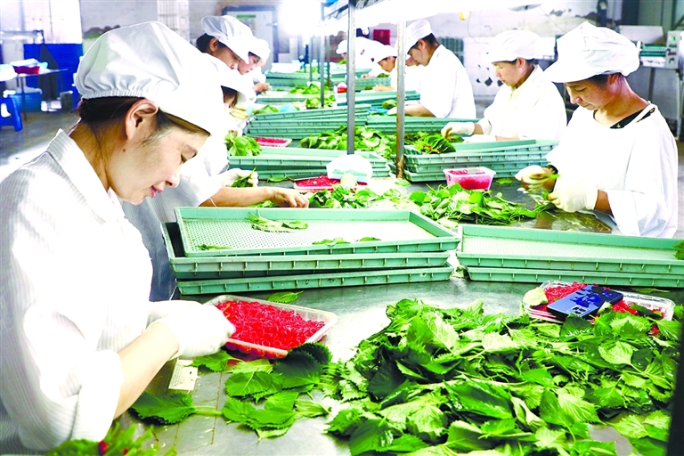近日,工人们在灌云县伊山镇紫苏种植基地大棚里采摘、挑选、整理、打包紫苏叶,打包好的紫苏叶将搭乘货运班机运往国外市场。近年来,伊山镇大力发展紫苏特色产业,建成集种植、生产、加工、出口于一体的紫苏产业化园区,年产紫苏叶300多亿张,为乡村振兴注入强大活力。记者 樊晓姝 通讯员 王鸿飞 晓祥 摄影报道