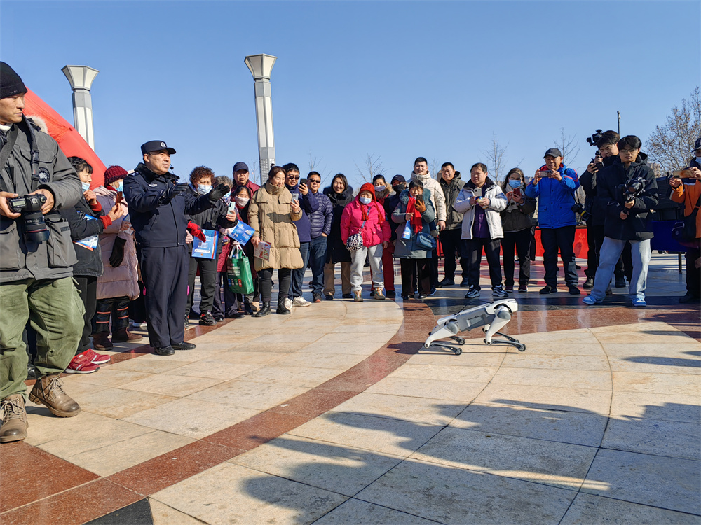 值得一提的是,当巡特警大队展示憨态可掬的警用机器狗时,现场氛围瞬间达到了高潮。机器狗灵活自如地执行各项任务,令群众惊叹不已,纷纷簇拥而至、热烈鼓掌。通过观看机器狗、无人机等高科技演示,现场群众深刻体会到了科技强警带来的安全感,也让他们切实明白了“平安就在身边”不是一句空洞的口号,而是实实在在的行动。