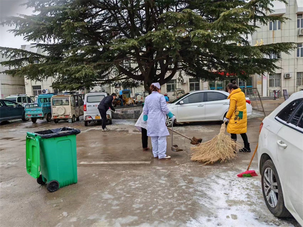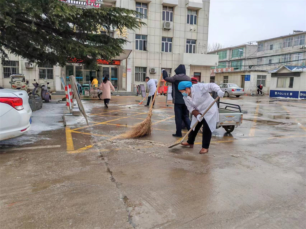 天气虽然寒冷,该院党支部书记、院长谭恒元靠前指挥、带头清理积雪,大家备受鼓舞、干劲十足,卫生院大门、门诊、住院部面前的通道上都能见到他们铲雪的身影。大家劳动热情高涨,分工明确,齐心合力,有的在前面用铁锹破冰,有的在后面用扫帚清扫积雪,一锹一锹、一点一点,辛勤的汗水伴随着“咔嚓咔嚓”的铲雪声,汗珠挂在每个人的额头上,个个干得热火朝天,经过约2个多小时的奋战,积雪被彻底清扫干净,为前来就诊的患者提供了一个安全的就医环境。得到了群众的一致赞誉。(孙红 李保成)