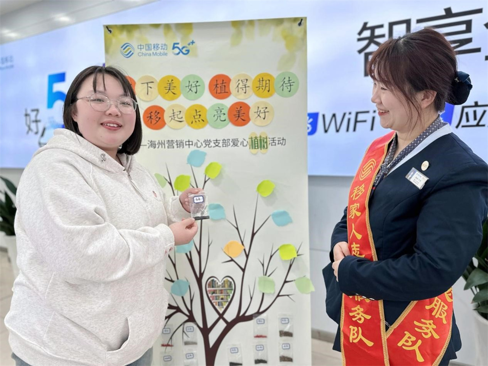 新华报业·新江苏3月13日连云港讯 近日,连云港海州移动带领“移家人”志愿者们走进营业厅,开展植树节宣传活动。