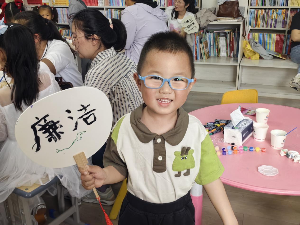 随后,海洋大学的志愿者们现场指导创作廉洁主题扇面,孩子们以莲花、翠竹为元素,将“正身明德”“清风徐来”等格言融入绘画创作。7岁的乐乐边绘制莲叶边向家长解释:“周敦颐爷爷说莲花‘中通外直’,就是要我们做坦荡的小公民!”家长纷纷用手机记录这生动一刻。