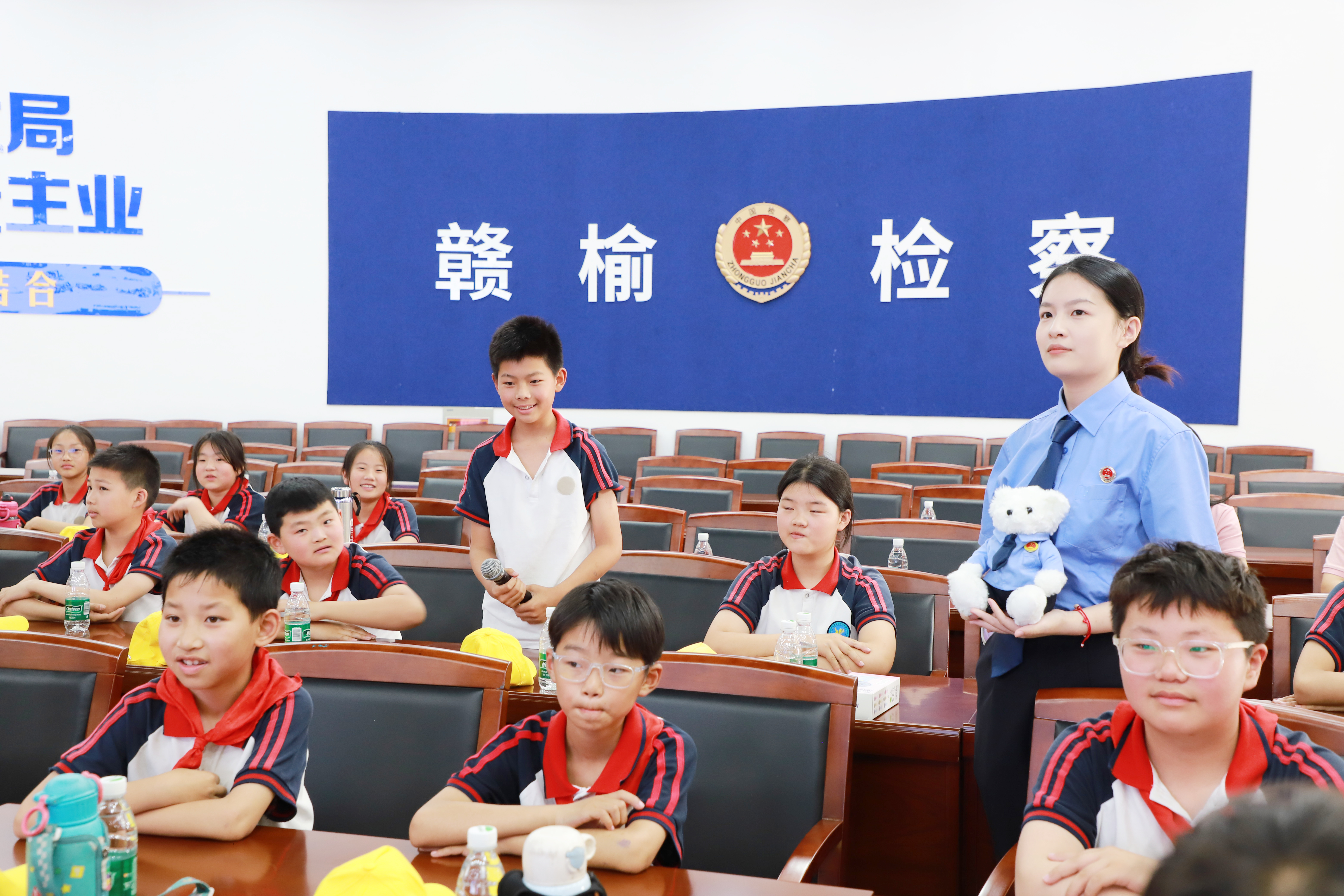 在多功能厅,第五检察部王琳检察官以“榆法同行 筑梦成长”为主题,为宁海路小学的同学们带来了一堂精彩的法治课。“同学们,你们知道吗?从出生到上学,民法典一直在默默守护着我们……”王琳检察官用生动的案例和趣味问答,为孩子们揭开了《中华人民共和国民法典》的神秘面纱。