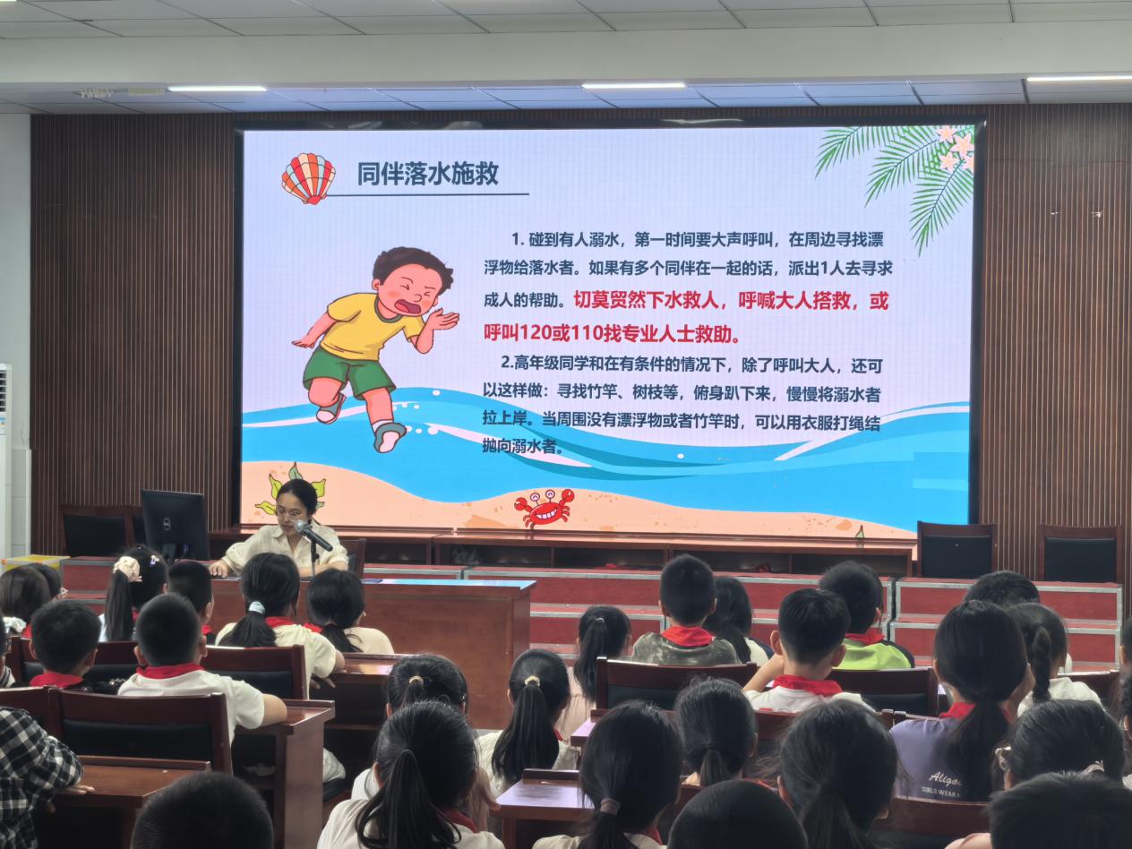 随着夏季来临,青少年溺水事故进入高发期,海州区创新推出“案例讲解+实操演练+有奖问答”教学模式,如南城街道邀请专业救援人员现场演示救生圈、浮力棒使用方法,80余名学生在抢答“同伴落水如何应对”等问题中赢取防溺水文创奖品,让“六不准”原则在欢声笑语中扎根。新浦街道港汽社区则联合郁洲实验小学开展“守护生命 从我做起” 活动,通过周边真实案例剖析与情景模拟,帮助学生牢记 “不私自下水”等安全守则。