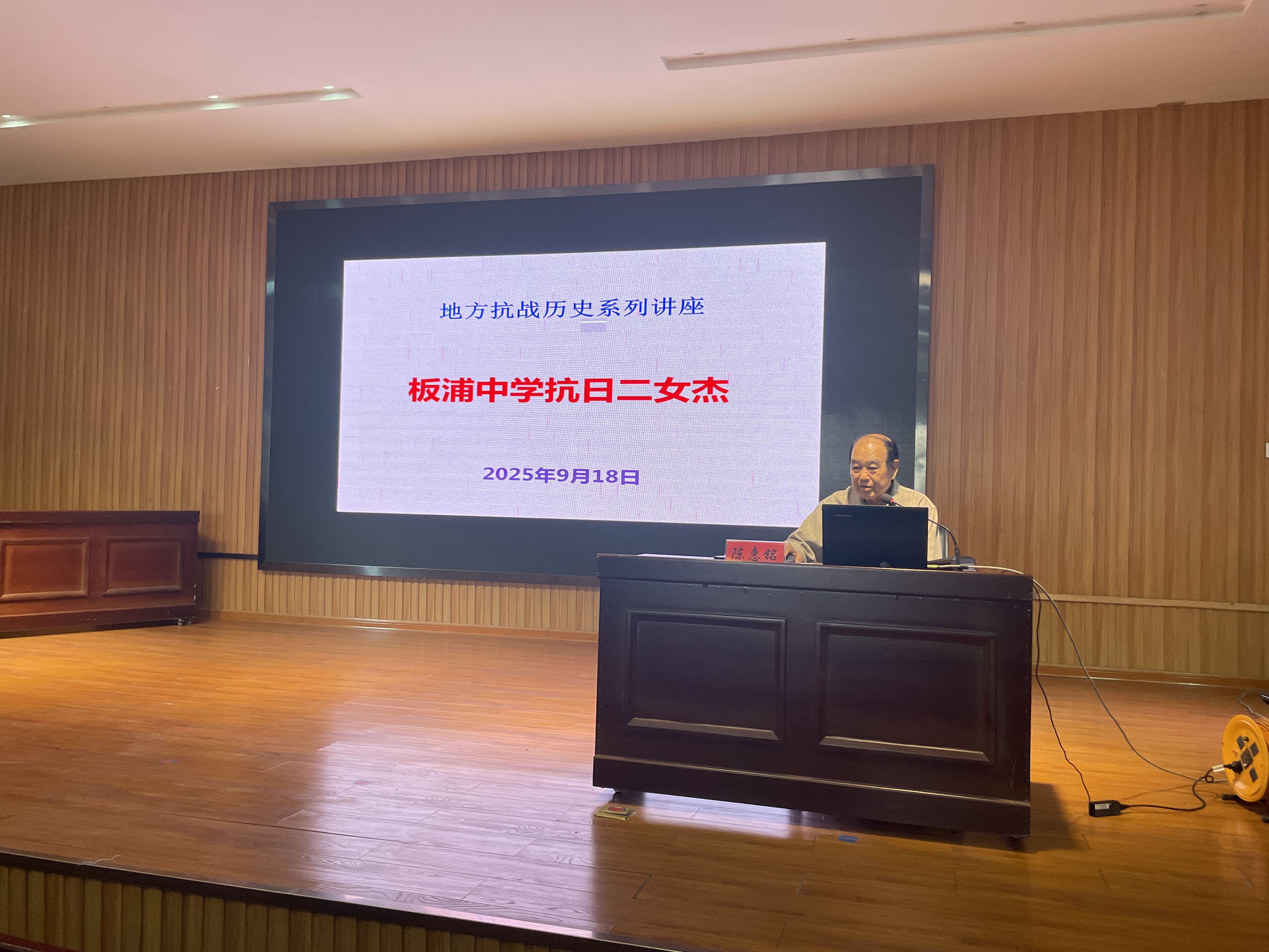 宣讲环节,陈惠铭同志以《板浦中学抗日二女杰》为题,为大家带来了感人至深的“板浦中学抗日二女杰”故事,通过丰富的历史细节,再现了当年两位女学生在国难当头之际,毅然投身抗日救亡运动的青春风采与无畏担当,展现了板浦大地上的巾帼豪情,激励着在场的每一位听众。警戒者,骆公辅老师深情讲述了板浦罗圩籍著名烈士徐佳标奋勇杀敌、舍身堵枪眼的壮烈事迹,生动的叙述将师生们的思绪带回了烽火连天的革命岁月,先烈视死如归的英雄气概令人动容。