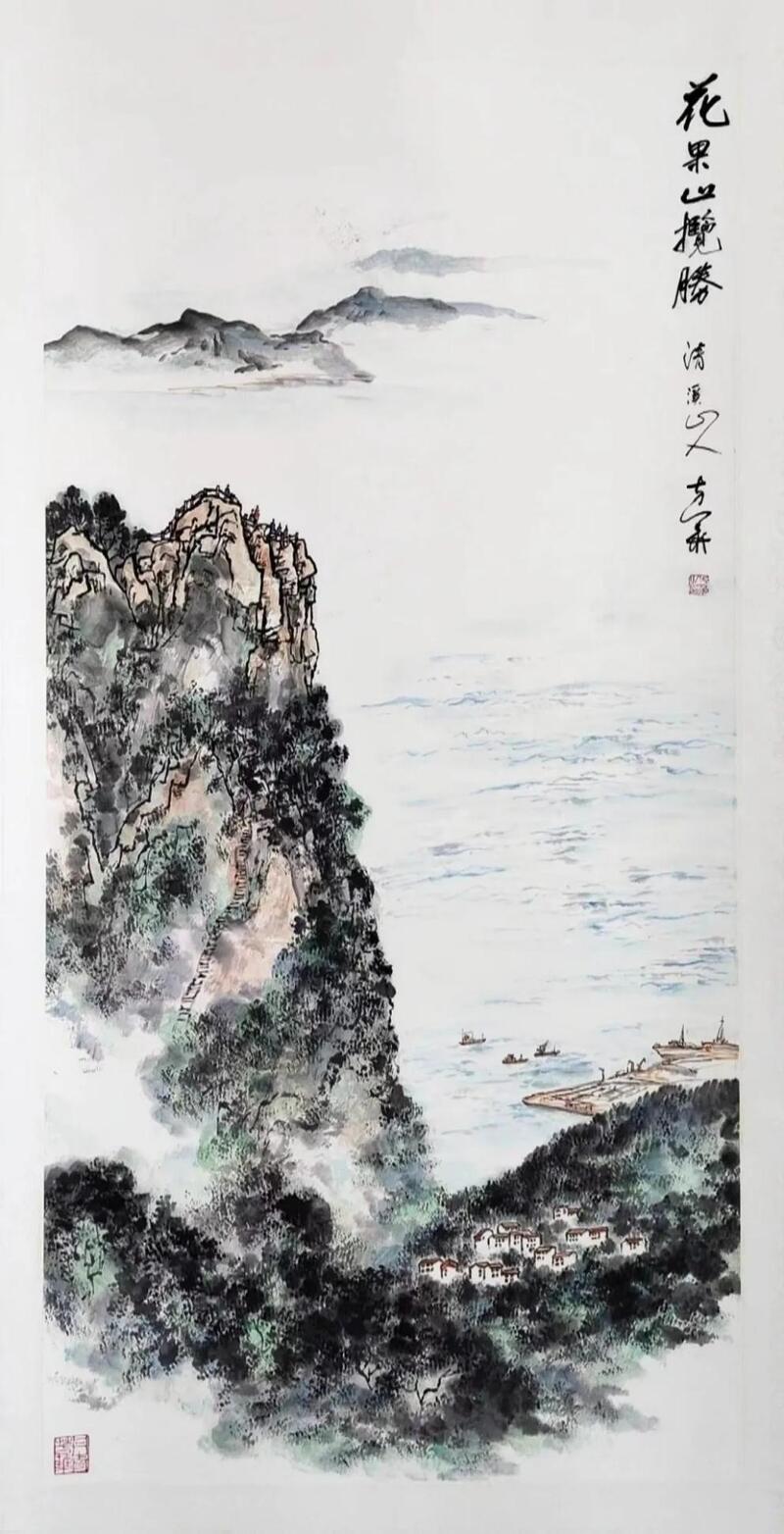 书画家方华在表达参展感受时说道:“连云港是一个美丽的城市,因为它拥山抱海,历史悠久,文化底蕴深厚。我也很荣幸受邀而来。我专门为这次画展创作了《连云港印象》《花果山揽胜》等作品,表达我对这座城市的理解。我希望通过画笔传递‘绿水青山就是金山银山’的理念,也期待与连云港的同道和市民多交流。”