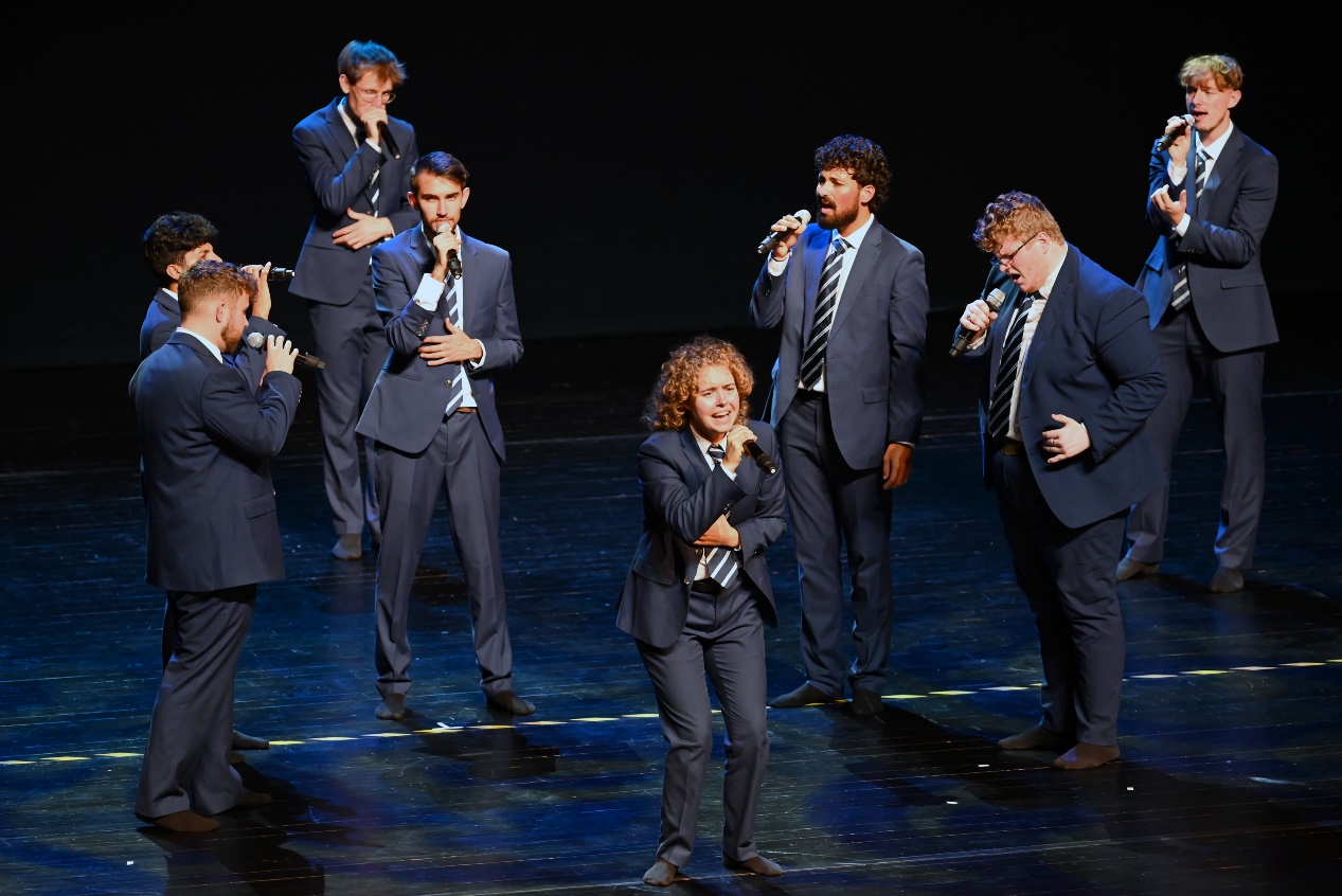 交汇点讯 9月19日19:30,连云港保利大剧院大剧场内座无虚席,英国牛津大学 OUT OF THE BLUE 阿卡贝拉合唱团登台亮相,为港城观众带来剧院史上首场阿卡贝拉音乐会。随着人声版《冰雪奇缘组曲》的旋律响起,现场观众不时跟随节奏轻晃身体,演出间隙的掌声持续近 1 分钟。本场演出中,本地合唱团成员与牛津学霸同台演唱《月亮代表我的心》,完成合唱首秀的参与者在谢幕时向舞台侧方挥手致意。