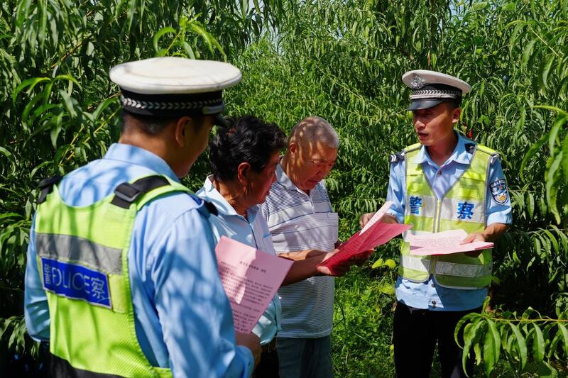 9月12日,交警大队石湖中队组织警力深入尤塘村桃园果园,通过发放资料、案例讲解、“拉家常”式对话等形式,重点宣传农用车辆违法载人、客货混装等交通安全知识。同时,在安峰镇山东村连片的花生地里,派出所民警利用农户休息间隙,开展防火、防盗、防溺水、交通安全及防诈骗知识宣讲。