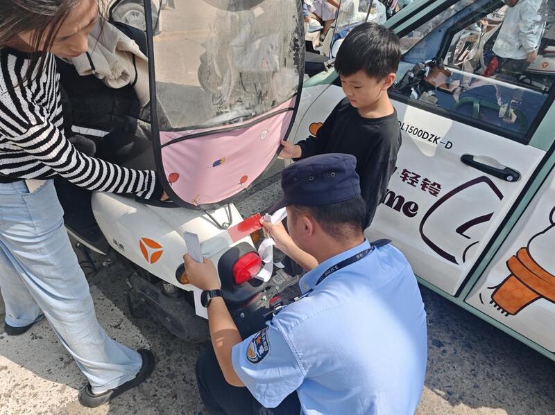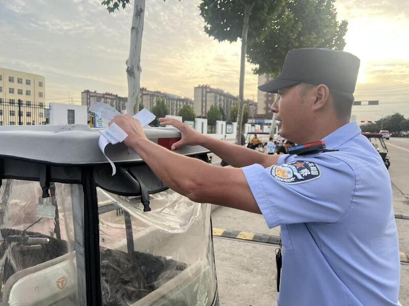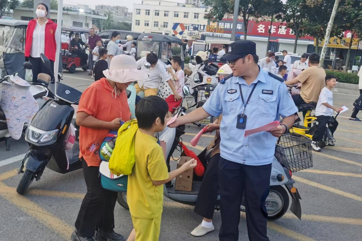 开发区派出所巧妙利用“护学岗”家长集中等候的契机,将安全宣传阵地前移。执勤民警在维护秩序的同时,积极开展形式多样的安全防范宣传活动。一方面,他们主动为接送学生家长的电动车免费粘贴反光贴,这一暖心举措显著提升了车辆在夜间及低能见度环境下的辨识度,有效降低了交通事故风险,获得了家长们的广泛好评。另一方面,民警通过发放宣传单页、现场以案说法、互动解答疑问等方式,向家长们普及防范电信网络诈骗、交通安全、防盗抢等法律知识和安全技巧,提醒大家增强防范意识,看管好个人财物,守护好“钱袋子”,实现了安全宣传与护学执勤的有效结合。