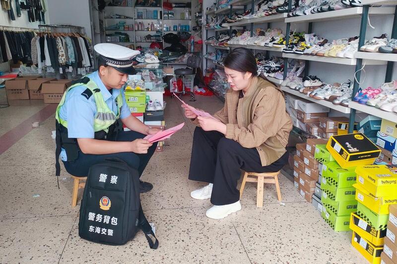 随后,宣传队伍又走进辖区沿街商铺。结合“双节”期间探亲、旅游需求上升,车流人流将显著增大的情况,民警辅警向商户们发放宣传资料,并特别提醒经常需要外出进货的店主,务必时刻谨记交通安全,做到不超载、不疲劳驾驶、不争道抢行,确保出行平安。