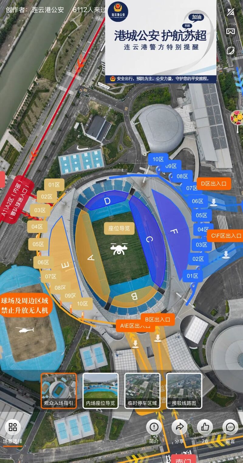 连云港公安推出一款“看球神器”——手机导航入场+座位+接驳+停车
