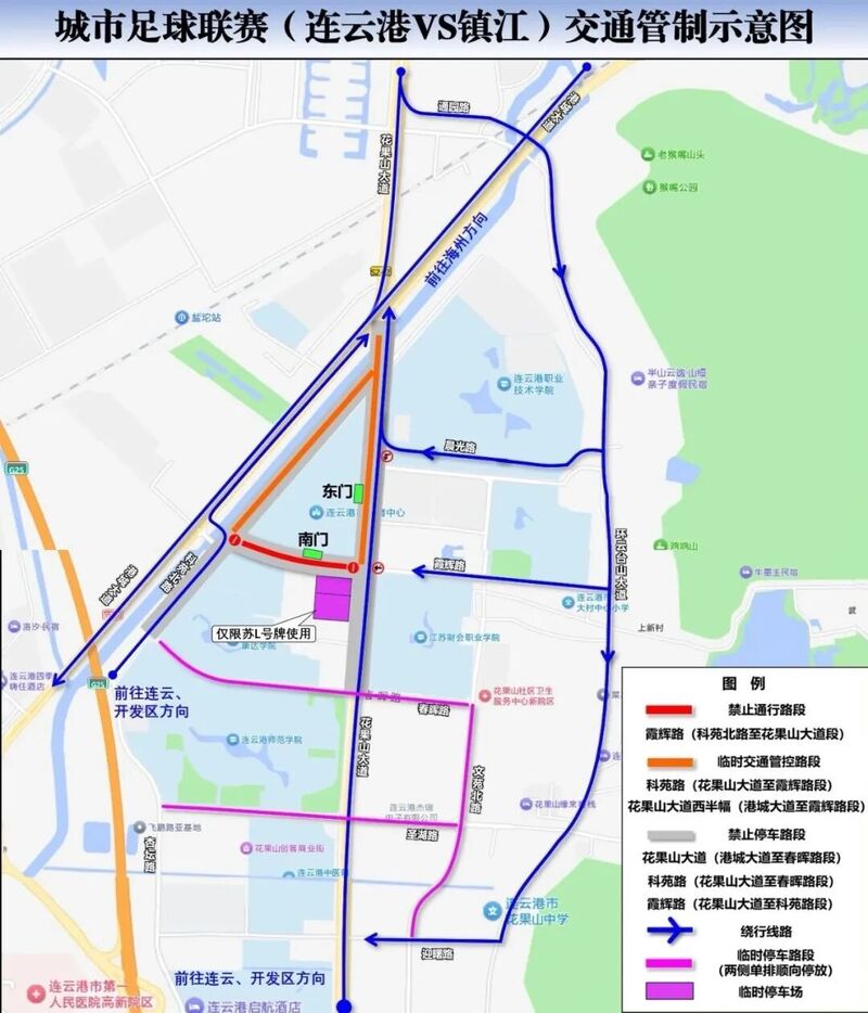 关于2025江苏省城市足球联赛(连云港VS镇江)比赛期间部分道路实施交通管制的通告