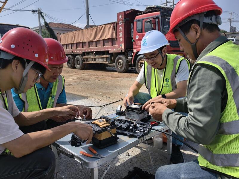 赣榆分公司网络支撑管理员张随军接报后,立即启动应急响应,带领抢修队顶着烈日赶赴海前村。经排查,系市政施工挖断主干光缆!情况紧急,张随军果断双线出击:一方面紧急协调市政暂停施工,腾出抢修空间;另一方面,为保障时效性极强的“黄金档”,决定采用最快的光缆熔接方案。
