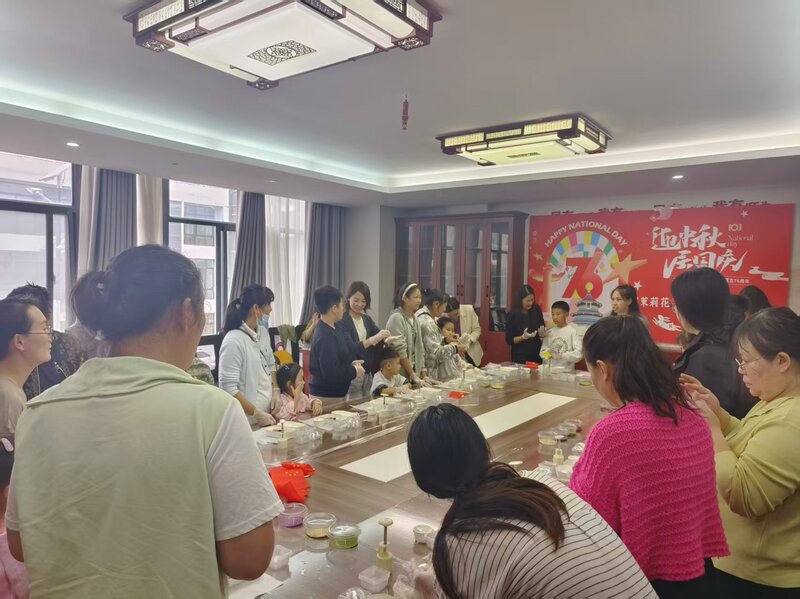 中国江苏网9月27日连云港讯 9月27日下午,海州区浦南镇樱花社区党群服务中心内笑语盈盈、暖意融融,“茉莉花开”文艺直通车行动之“迎中秋·庆国庆”双节民俗体验活动在此温馨启幕。家长与孩子围坐一起,亲手制作月饼、拼装灯笼,在脸上绘制国旗图案,在沉浸式动手实践中感受中秋佳节的魅力,也传递着对祖国的美好祝福。
