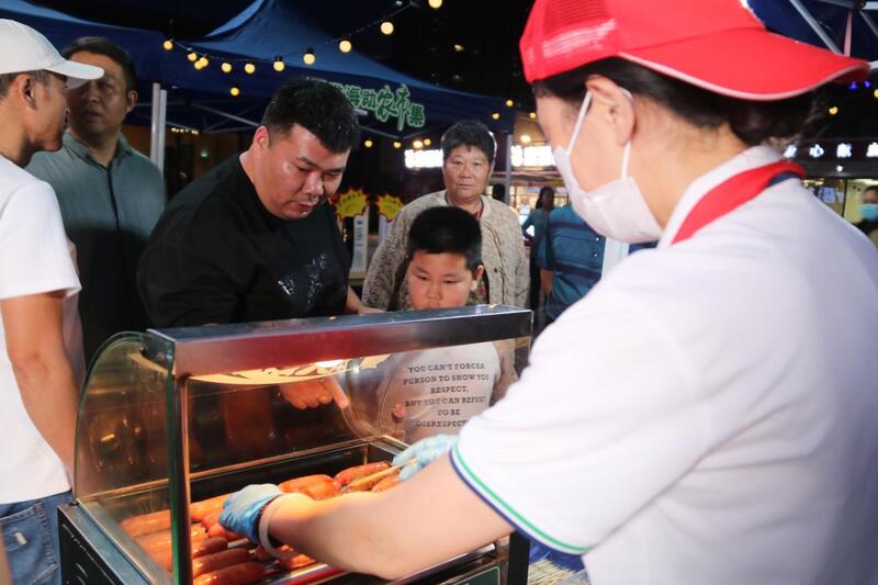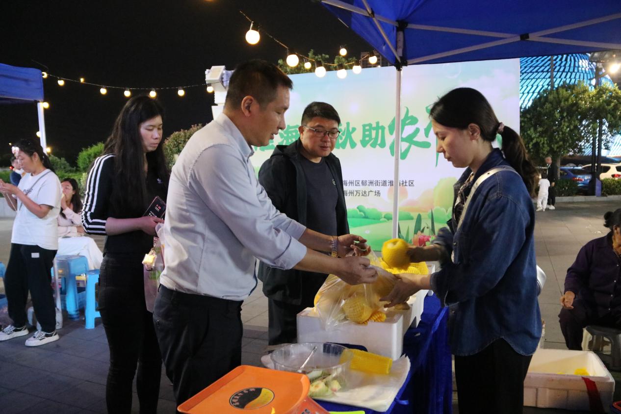 “这桃子真甜,是自家种的吗?”“鱼丸怎么卖?”……现场,社区工作人员和农户们热情地介绍着产品的特色与种植过程,居民们则对产品的品质和价格赞不绝口。一位带着孩子前来采购的殷先生表示:“刚买的烤肠孩子说太好吃了,这款烤肠在超市和网上都买不到呢。”助农市集不仅满足了居民的“菜篮子”需求,更传递了邻里互助、爱心接力的温暖情谊,有效激发了社区消费活力,助力乡村振兴。