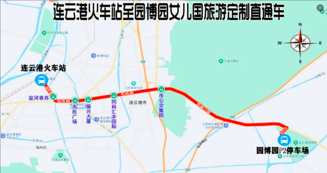 除了停车福利,海州区还贴心开通园博园免费定制直通车,进一步畅通出行渠道。直通车运营时间为10月2日至3日,约1小时一班,共设两条线路。1号线从连云港火车站出发,途经盐河巷西、市民广场等站点,最终抵达园博园P2停车场;2号线以工贸职业学校公交站为起点,经财会北门、康达学院等站点,同样开往园博园P2停车场。“两条线路每日均从14:00开始发车,至20:00结束,返程从园博园14:30启动,最晚一班为21:20,共7个班次,为市民往返园博园提供充足选择。”海州区文体旅局相关负责人表示。