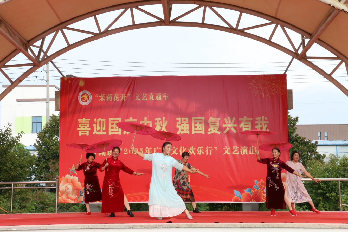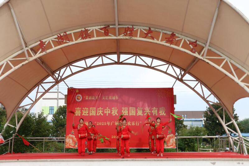 中国江苏网讯 金秋时节,丹桂飘香。值国庆节和中秋节即将到来之际,作为“茉莉花开”文艺直通车行动内容之一,日前,东海县青湖镇在新时代文明实践所的百姓大舞台上,举办了一场以“喜迎国庆中秋、强国复兴有我”为主题的2025年广场文化欢乐行文艺演出活动。这场充满活力、激情飞扬的文艺演出吸引了辖区广大干群前来观看,在家门口共享一份丰盛的“文化大餐”,现场营造出了欢乐喜庆的浓厚节日氛围。