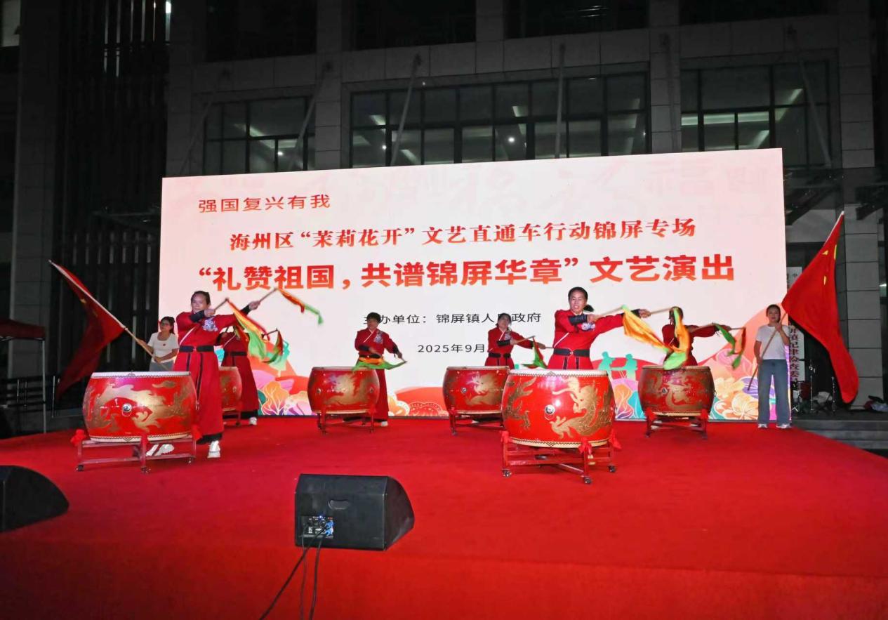 中国江苏网9月29日连云港讯 金秋送爽,丹桂飘香。在这满载丰收喜悦的时节,为热烈庆祝中华人民共和国成立76周年,深情礼赞伟大祖国的辉煌成就,全面展现锦屏镇干部群众团结奋进、昂扬向上的精神风貌,海州区“茉莉花开”文艺直通车行动走进锦屏镇,隆重举办“礼赞祖国,共谱锦屏华章”专场文艺演出。
