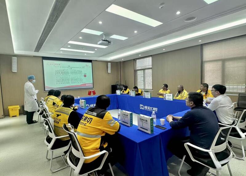 外卖骑手常年奔波在外,工作强度大、作息饮食不规律,往往忽视了自身的健康管理,特别是口腔健康。基于此,牛山街道党工委主动联系对接成宏口腔医院党支部,联合开展“关爱骑手 从‘齿’开始”口腔健康关爱行动,吸引了十余名外卖骑手报名参与。活动结合骑手职业特点,组织专业医师开展口腔健康微讲座,讲解常见口腔问题预防及日常保健知识,并现场为骑手提供免费口腔检查,让健康关怀更加精准贴心。