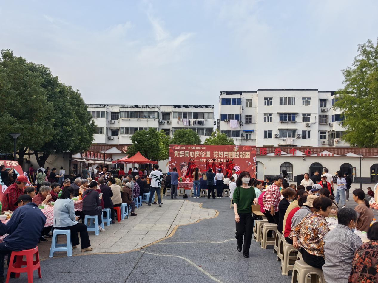 为了与民同乐,钢铁社区举办迎国庆文艺汇演,辖区居民欢聚一堂共庆祖国华诞。精彩纷呈的节目点燃了现场热情:群舞《当那一天来临》豪情万丈,音乐快板《党的二十届三中全会放光辉》打出欢腾,男声小组唱赢得掌声不断。现场周边还设置了义诊、义剪、反诈宣传等便民服务摊位,将温暖关怀送到居民身边。整场活动洋溢着喜庆祥和的节日氛围与和谐文明的社区新风,浸润着每一位居民的心田。