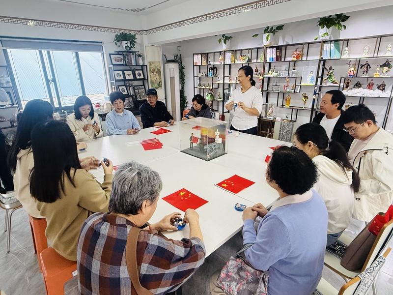 活动还组织流动党员们走进省级非遗“千艺鑫玺面塑工坊”。在工坊内,大家欣赏了以西游记、百花仙子、“时代楷模”王继才夫妇等为主题的精美面塑作品,并在邢老师的指导下亲手制作了面塑红军冰箱贴,沉浸式感受非遗的独特魅力。