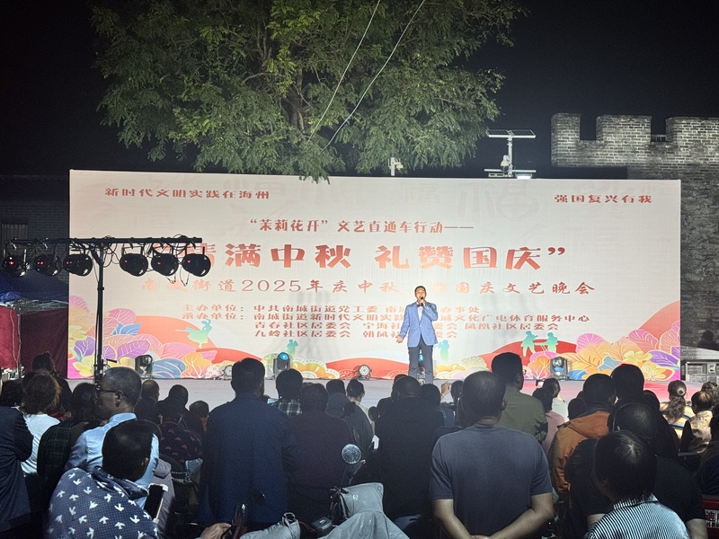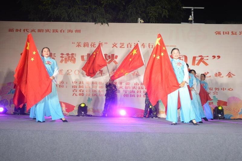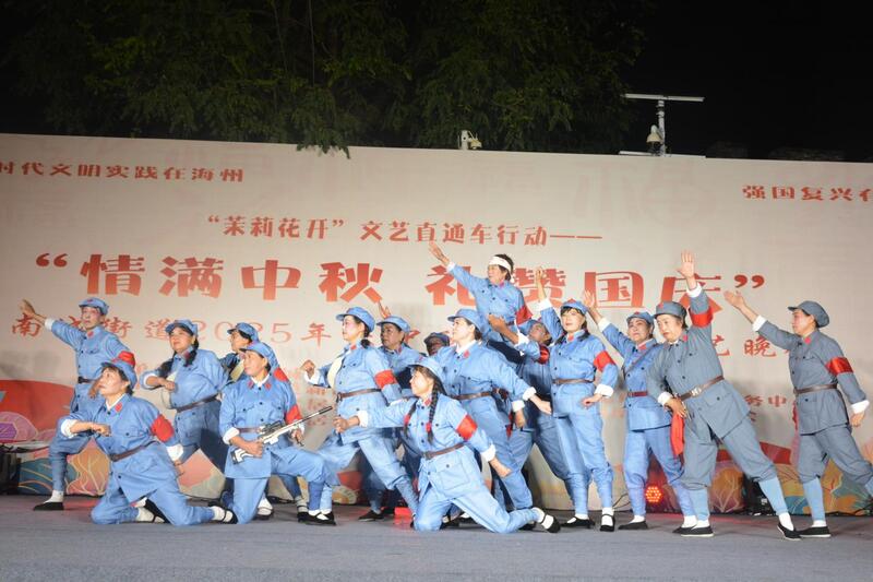 中国江苏网9月30日连云港讯 秋月朗照,丹桂飘香。值此“我们的节日·中秋”与国庆双节同庆之际,9月29日晚,海州区南城街道新时代文明实践所以“强国复兴有我”群众性主题宣传教育活动为引领,在街道城门广场隆重举行“‘茉莉花开’文艺直通车行动-‘情满中秋 礼赞国庆’”文化惠民演出。一场汇聚歌舞、情景剧等多种形式的文艺盛宴,为辖区居民献上节日的祝福,更唱响了“强国复兴有我”的时代强音。