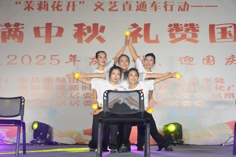 从宁海社区深情款款的男声独唱《最美的歌儿唱给妈妈》,到朝凤社区展现丰收喜悦的草帽舞《今年大丰收》;从凤凰社区寓意美好的灯笼舞《蒸蒸日上》,到九岭社区压轴登场的舞蹈《我们的中国梦》……近20个由各社区文艺骨干自编自演的节目轮番上演,充分展现了南城街道群众文化生活的丰富多彩和居民们积极向上的精神风貌。