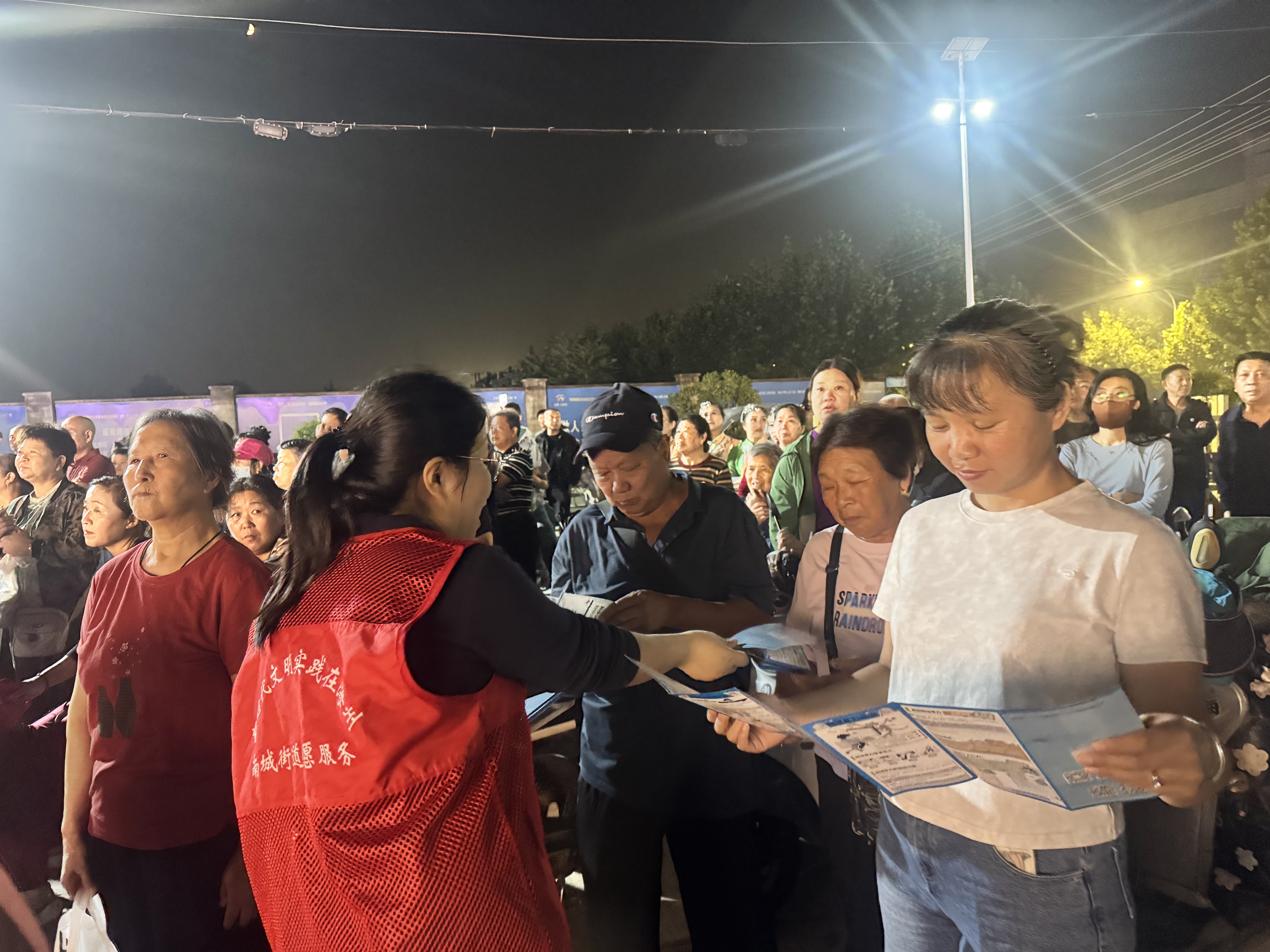 演出现场,不仅有视听盛宴,更有文明新风的传递。南城街道新时代文明实践所的志愿者们穿梭在人群中,不仅维持着现场秩序,还积极向观众发放移风易俗和网络安全宣传单。他们耐心讲解,倡导婚事新办、丧事简办,抵制陈规陋习,同时提醒居民增强网络安全意识,防范网络诈骗,让这场文化盛宴在欢声笑语之外,更增添了文明与安全的深刻内涵。