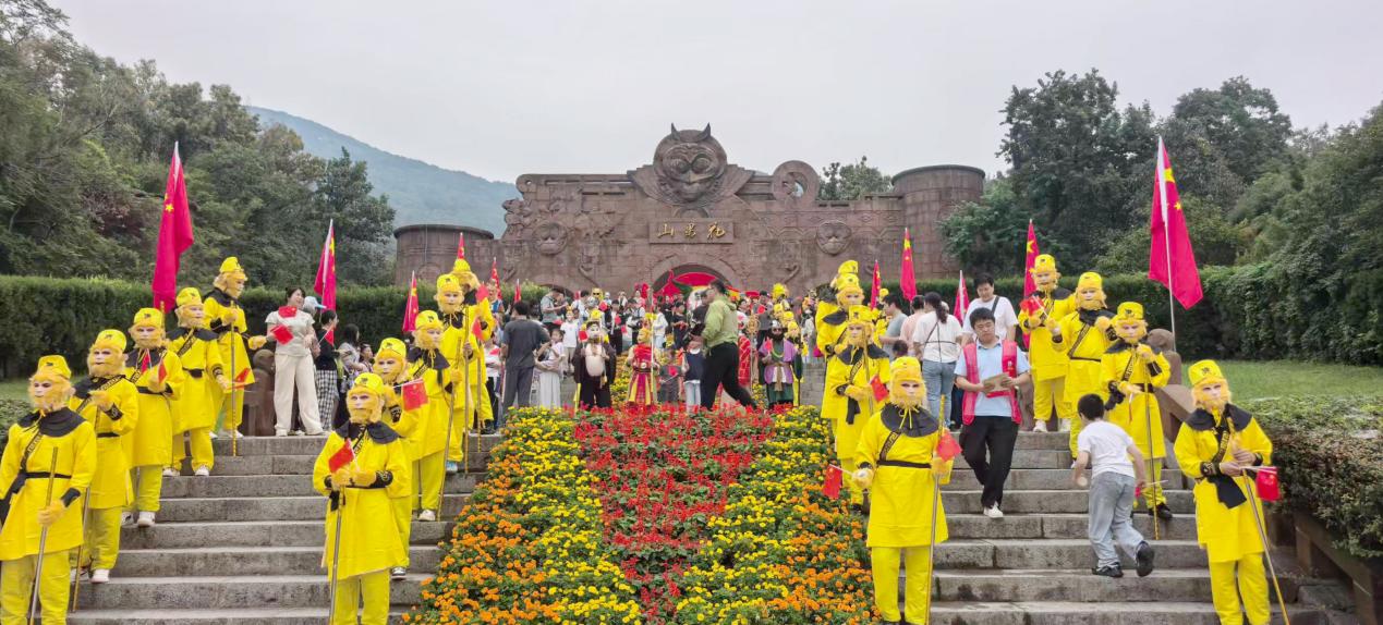 在游客中心,来自俄罗斯、印度尼西亚、加纳、刚果的外国友人也来到“孙悟空”的老家,与现场游客一同挥舞国旗,跟着巡演队伍沉浸式体验西游文化,脸上满是对这场假日文化盛宴的喜爱与兴奋。