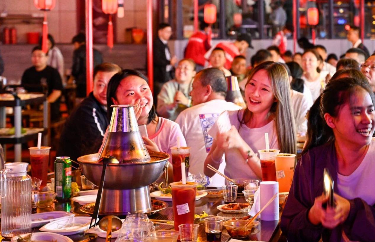 今年“国庆中秋”假期,渔湾景区将自然观光、文化体验与特色美食完美融合,精心打造12小时“白+黑”全时段游览体验,为游客准备了丰富的团圆火锅宴,在依山傍水的露天餐厅,热气腾腾的火锅与璀璨夜景相得益彰,游客们围炉而坐,在星空下品尝美食、欣赏表演,尽享假期带来的双重愉悦。(刘东 孙艺菡)