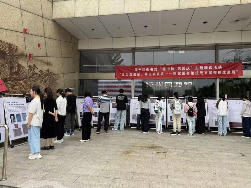 9月30日至10月4日,海州图书馆引进国家图书馆“让历史说话,用史实发言”抗战文献整理成果展。详实史料与震撼画面,让市民驻足观看,重温革命先辈英勇事迹,深刻感悟和平来之不易。这场展览既是生动的历史课,更是深刻的精神洗礼,激发了大家“勿忘国耻、振兴中华”的爱国热情,为双节活动注入精神底色。