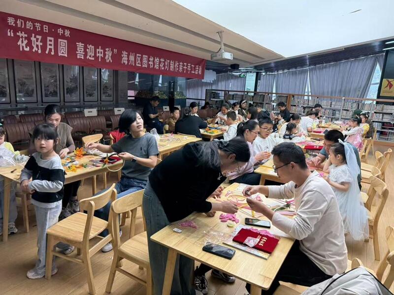 此前“花好月圆话中秋”诗词专题讲座现场座无虚席,主讲老师从中秋起源讲起,赏析古今咏月、怀乡、寄情的经典诗词。读者在诗境中感受中秋思乡团圆之美,体会中华诗词的永恒魅力,进一步增强民族文化认同感与自豪感。而少儿活动区的中秋花灯制作亲子活动同样热闹,二十余组家庭参与,孩子在家长协助下,做出一个个精巧童趣的花灯。活动既锻炼孩子动手与创造能力,又在亲子协作中增进情感,让传统文化以轻松的方式扎根孩子心田。