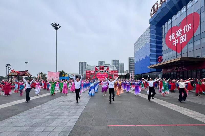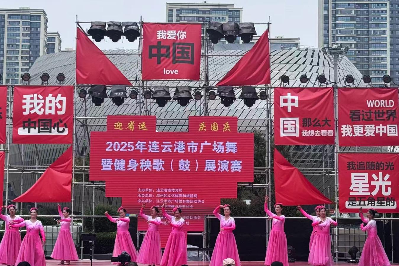 中国江苏网10月7日连云港讯 为深入贯彻全民健身国家战略,以承办二十一届省运会为契机,丰富港城群众文化精神生活,10月7日上午,由连云港市体育局主办,连云港市海州区文化体育和旅游局承办,连云港市广场健身舞运动协会、连云港市健身秧歌协会、海州区体育总会、海州区广场舞运动协会、连云港海州万达广场共同协办的“迎省运 庆国庆”2025年连云港市广场舞暨健身秧歌(鼓)大赛在万达广场正式拉开帷幕。现场飘扬的五星红旗与绚丽的节日装饰交相辉映,让运动激情与爱国情怀在港城大地同频共振。