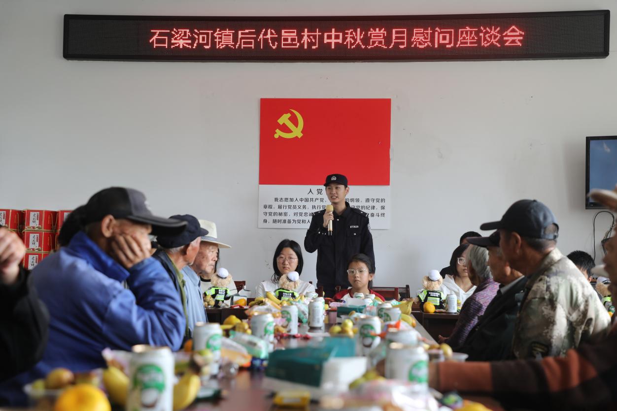 10月6日一大早,东海县石梁河镇后代邑村村委会内一片欢声笑语,一场名为“中秋团圆暖人心,法律安全护成长”的座谈联欢活动在石梁河镇后代邑村温情上演。此次活动由石梁河派出所关工站携手村委会志愿者及连云港新爱食品科技有限公司等爱心单位共同策划,特别邀请了村内20位孤寡老人及30名单亲家庭、留守儿童共同参与。