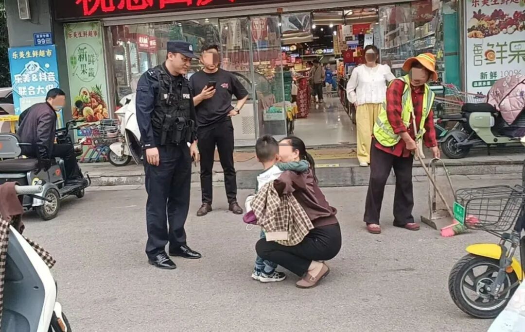 10月1日,侍庄派出所民警接到一名女士求助,称4岁的孙子在超市附近走失,民警安抚女士的同时,迅速启动紧急寻人机制,终于在体育馆附近找到走失男孩。