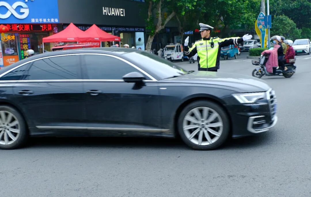 “快上车!”交通管理大队杨集中队中队长周开华,接到群众求助,需要开道送医,他带领辅警驾车一路疾驰,仅用23分钟,将受伤人员送至灌云县人民医院救治。