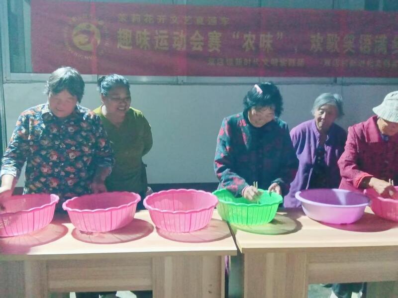 中国江苏网10月9日连云港讯 10月7日,华灯初上,东海县双店镇双店村文化广场歌声飞扬,热闹非凡,由双店镇新时代文明实践所、双店村新时代文明实践站联合举办的茉莉花开文艺直通车“趣味运动赛‘农味’欢声笑语中乐开怀”主题活动在这里激情上演。来自全村诸多聚集于此,通过精彩纷呈、别具一格的“农趣”比赛,向耕耘者致敬,为丰收者喝彩。