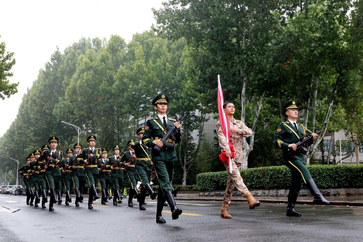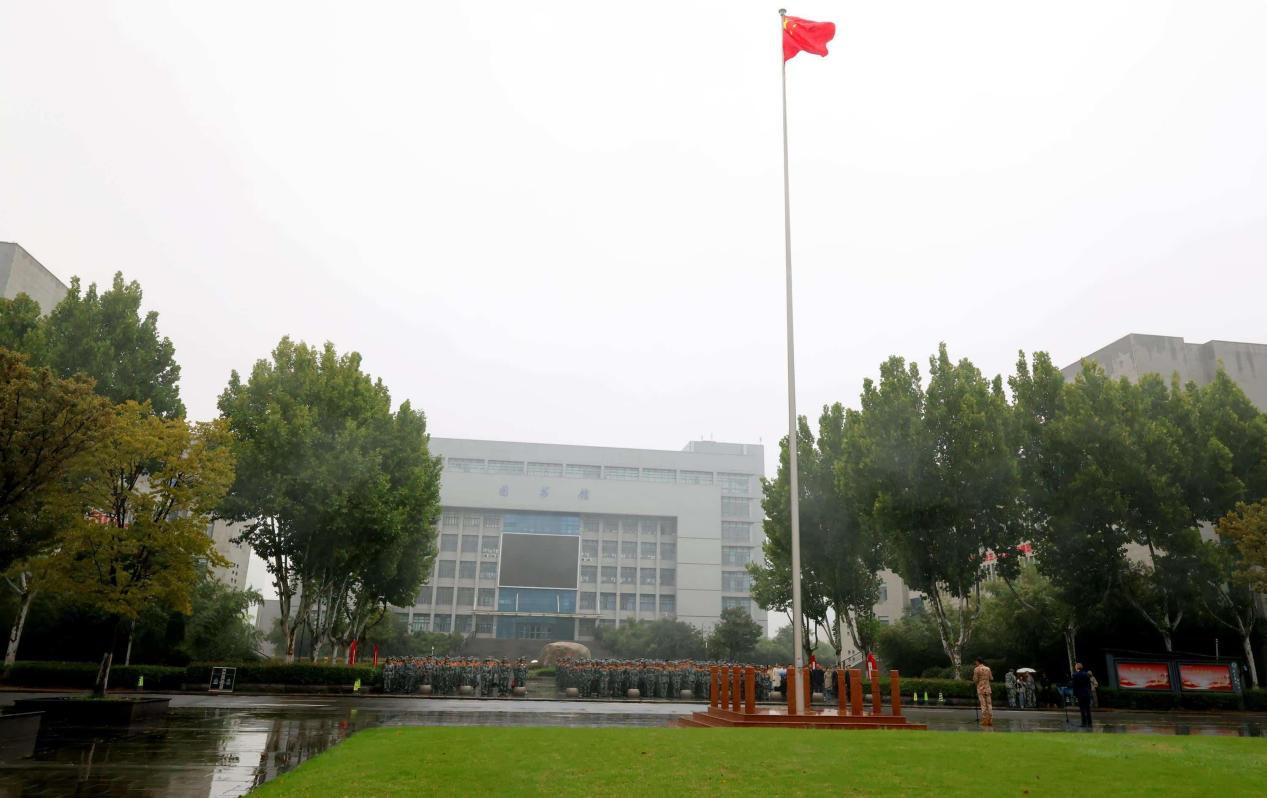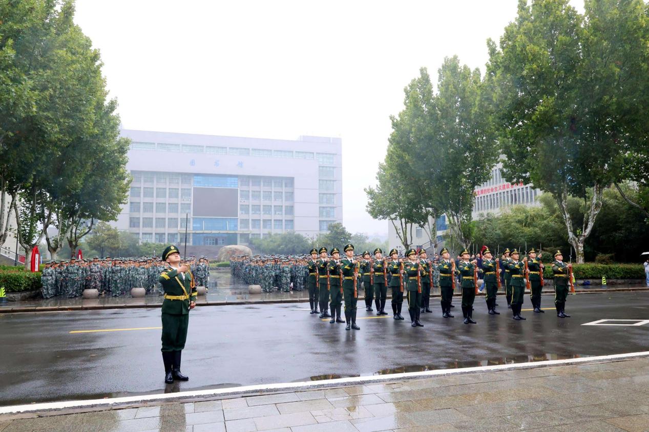 校领导,机关中层干部,建筑工程学院、医药工程学院教师代表和全体身着迷彩军训服的大一新生共计1000余人参加升旗仪式,仪式由建筑工程学院党总支书记王卫红主持。