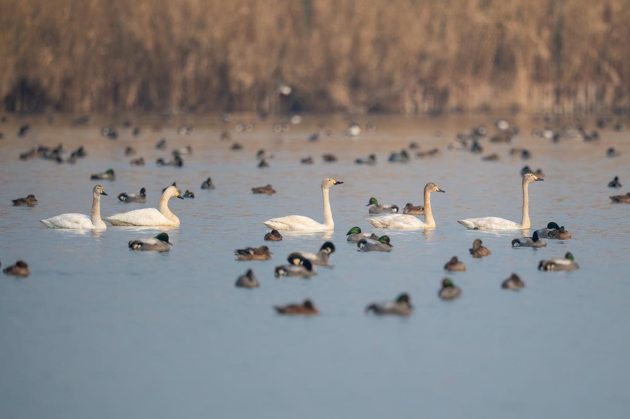 “生态好不好,鸟类是用翅膀来投票的。”据生态监测人员介绍,随着月牙岛湿地生态系统的持续恢复和稳定,这里已成为越来越多野生鸟类重要的栖息地和补给站。历年监测数据证实,月牙岛不仅是“明星物种”小天鹅稳定的越冬栖息地,还常年吸引着白鹭、斑嘴鸭等大量鸟类在此繁衍生息,其中不乏多种国家重点保护珍稀鸟类,“鸟类天堂”的美誉不胫而走。