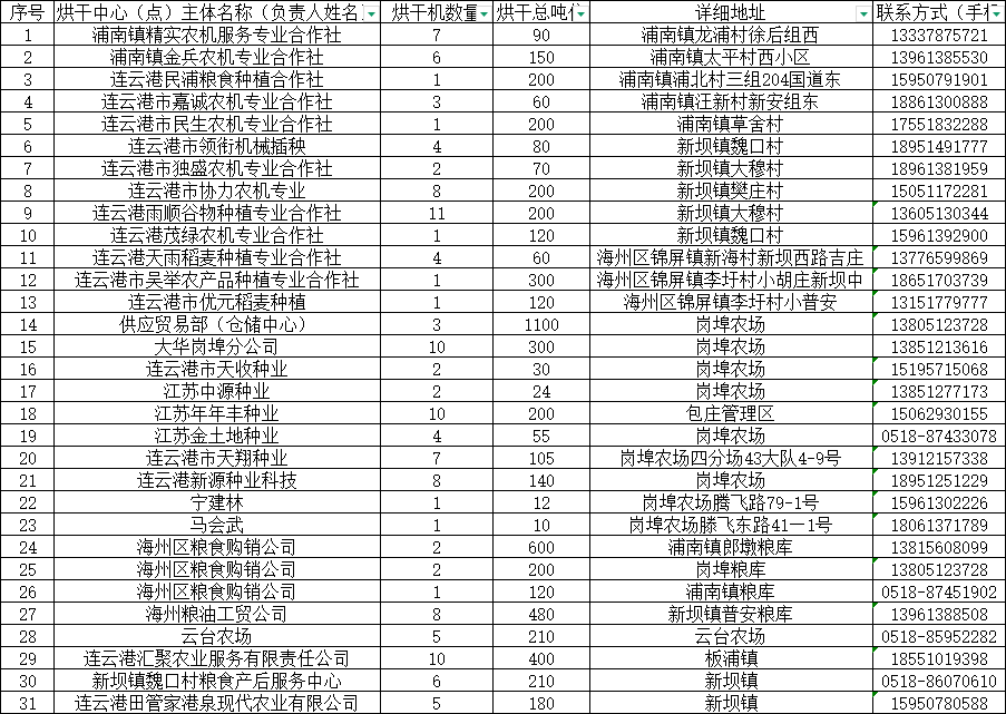 据海州区农业农村局相关负责人介绍,此次公开的31处烘干中心(点)涵盖国有粮企、合作社、家庭农场等多种经营主体,可满足周边农户就近烘干需求。“我们前期对全区烘干设施进行了全面摸排,不仅核实了各站点的设备运行状态、最大处理量,还要求所有站点公开联系电话,确保农户随时能咨询、随时能烘干。”该负责人表示。
