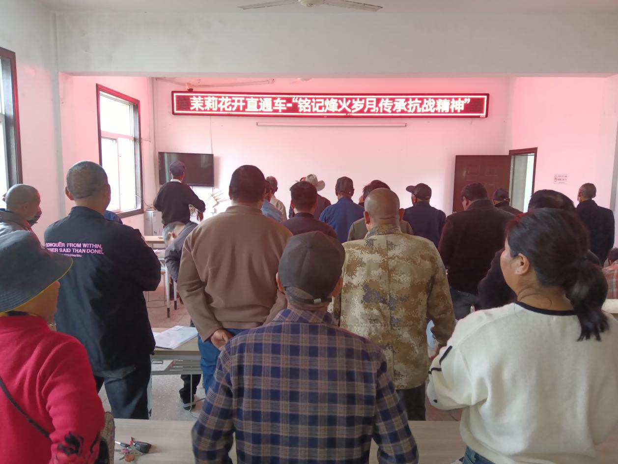 中国江苏网10月16日连云港讯 10月16日,在雄壮激昂的《义勇军进行曲》旋律中,一场由东海县双店镇新时代文明实践所、双店镇昌沂村新时代文明实践站举办的茉莉花开文艺直通车“铭记烽火岁月 传承抗战精神”主题文化活动在昌沂村党群服务中心举行。全体村(组)干部、党员群众代表以及退役军人50余人齐聚一堂,共同追忆峥嵘岁月,缅怀革命先烈,传承红色基因。