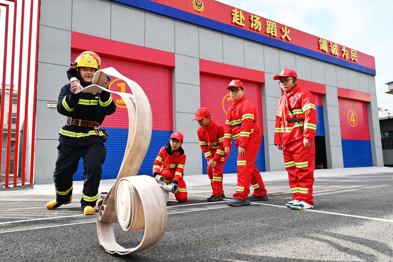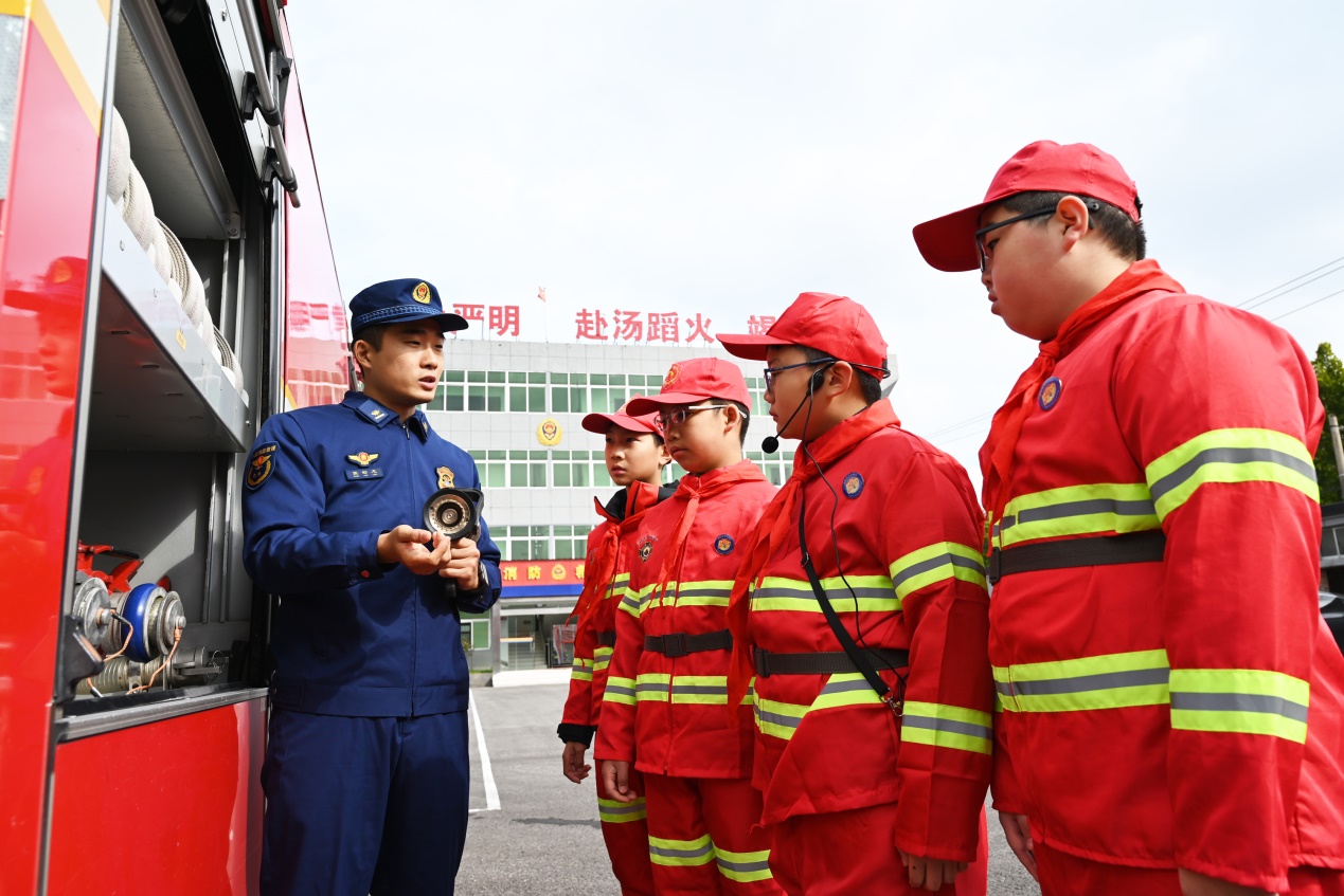 他们还走进市消防队听消防员讲解器材应用与安全技能,上了一堂生动的消防安全实践课