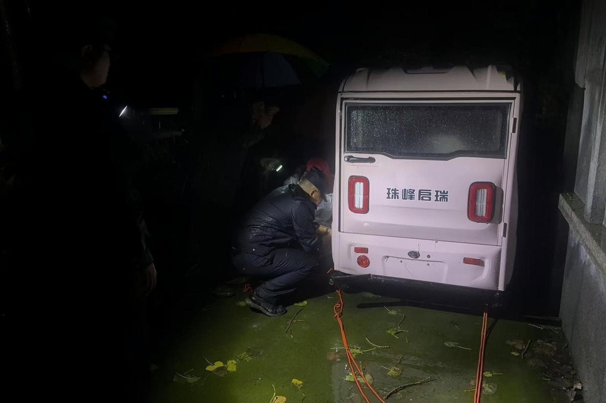 此时,大雨依旧滂沱。看着老人的财产即将被雨水浸泡损坏,民警当即决定利用警车进行牵引。“不能再等了,车子一直泡在雨里肯定会坏。”民警说道。